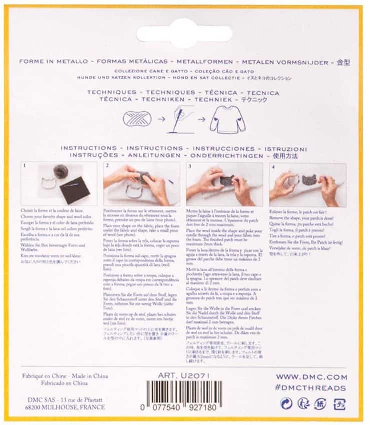 Formine in metallo della DMC da usare nella Patch Art. Ogni confezione contiene 4 formine: diverse per soggetti e grandezza.