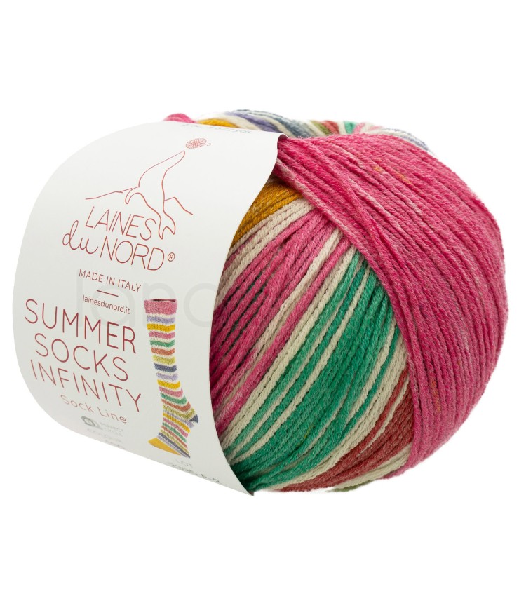 Summer Socks Infinity di Laines du Nord è il filato ideale per chi desidera realizzare calze primaverili ed estive uniche, colorate e perfettamente coordinate… senza complicazioni.