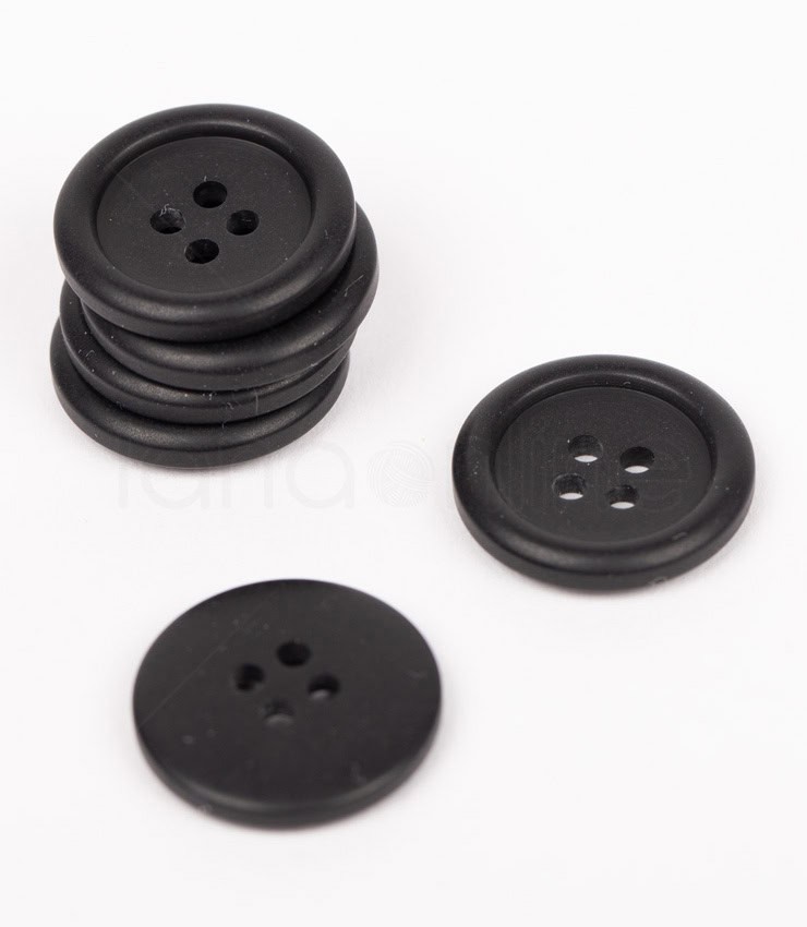 Made from durable, high-quality polyester, this button is designed to last over time while maintaining its beauty. The flat button with four holes has a smooth finish and a bevelled brim.