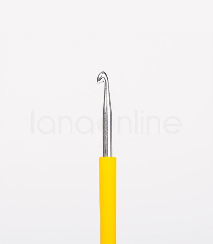 The crochet hooks DROPS Circus they have aluminum tips and each size has a handle ergonomic for a good grip e with its own plastic color, very comfortable to hold!