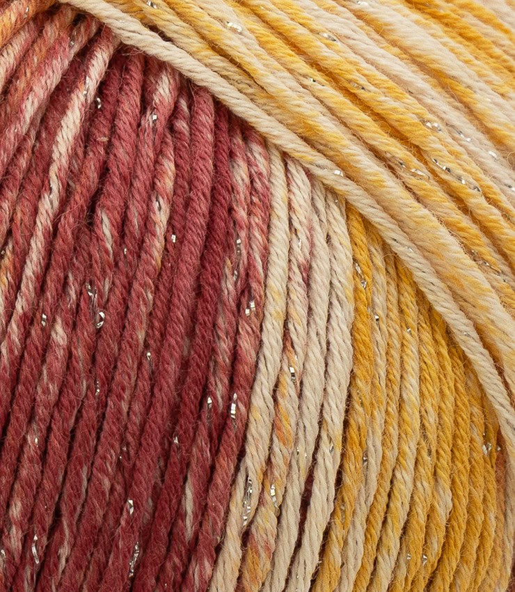 Its delicate pastel variegated shades blend with a subtle lurex effect, creating a yarn that catches the light in a discreet and sophisticated way. The result is an elegant luminous effect that is never excessive, perfect for those who love a feminine style that is both refined and natural.