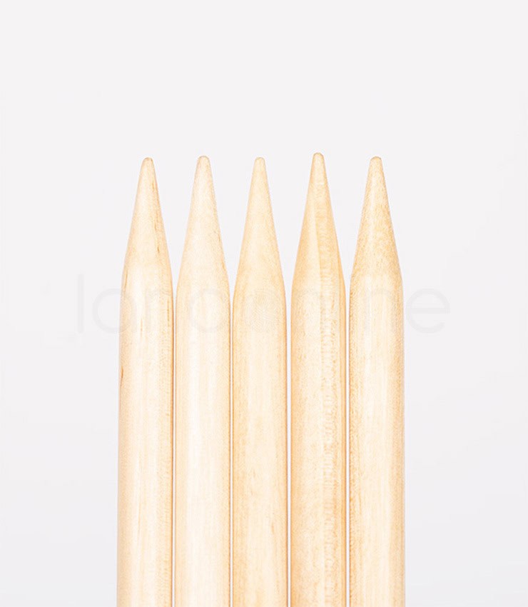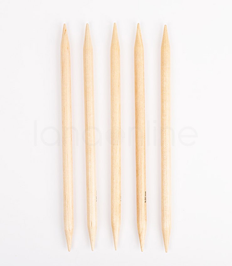 20 cm long, with carefully made points, neither too pointed nor too rounded, simply perfect for knitting in the round with 5 needles.