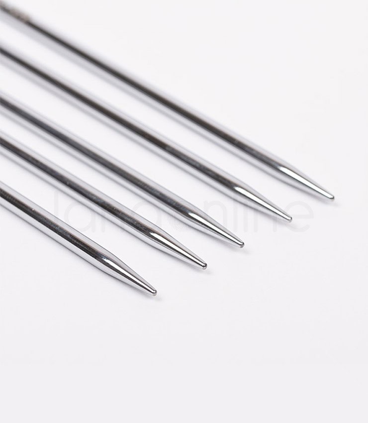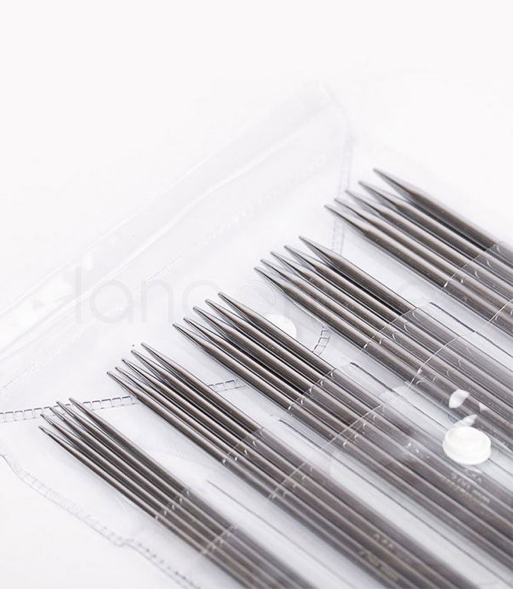 A set of short double pointed needles (15cm) for knitting in the round with 5 needles.