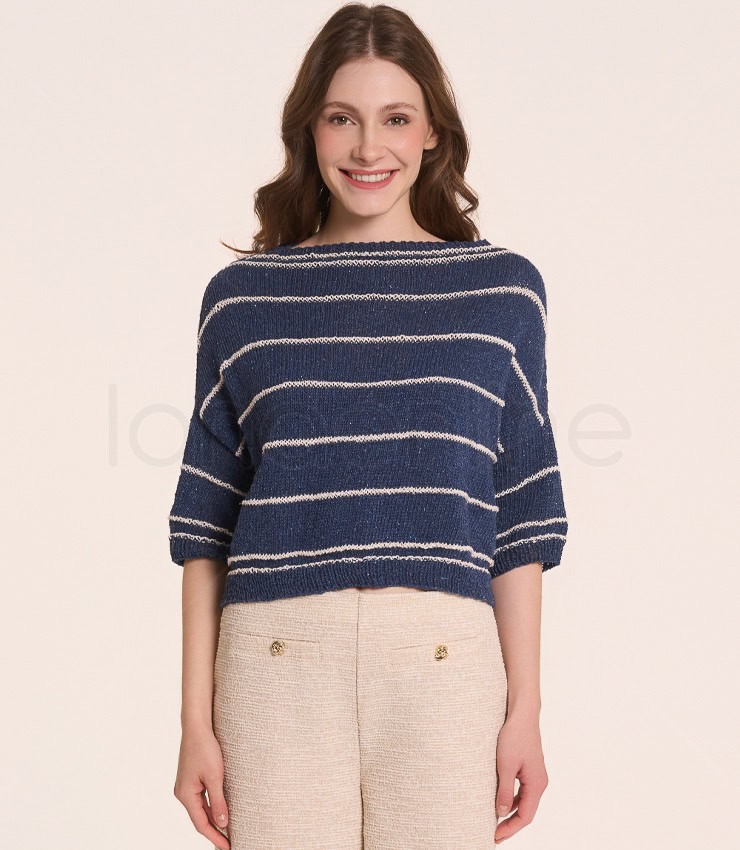 Free pattern for a stylish and fresh striped sweater. The garment has been knitted using Linilk yarn by Laines du Nord.