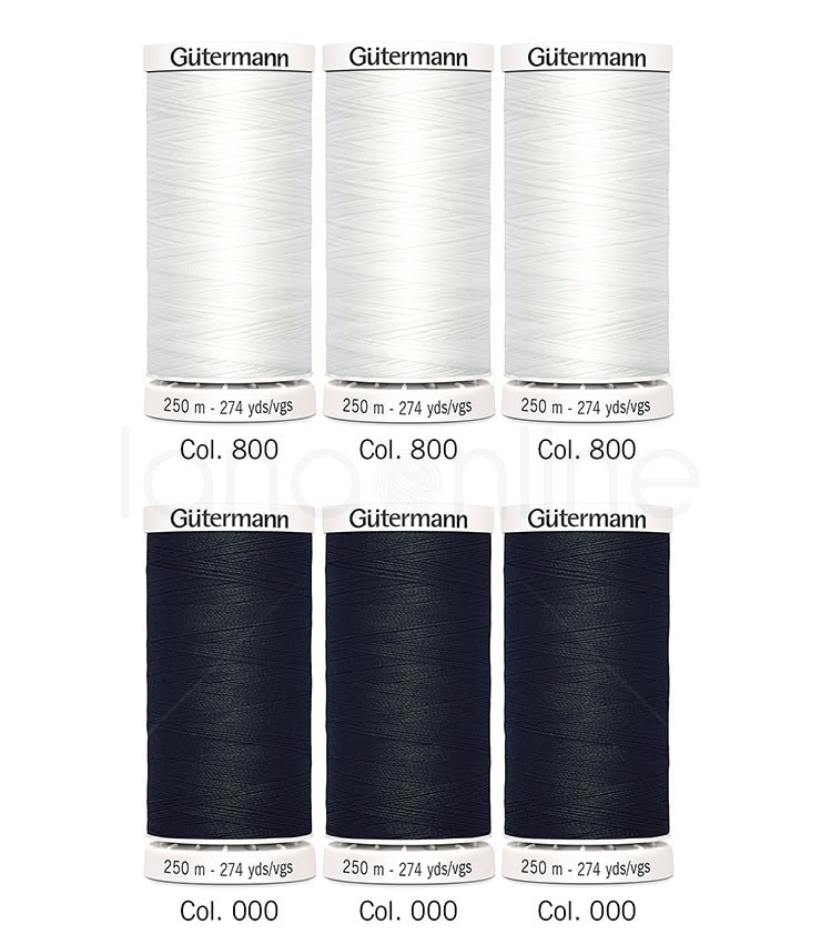 Gütermann set of sew-all threads: suitable for every need. The pack contains 6 spools of 250m in the two basic colours white and black.