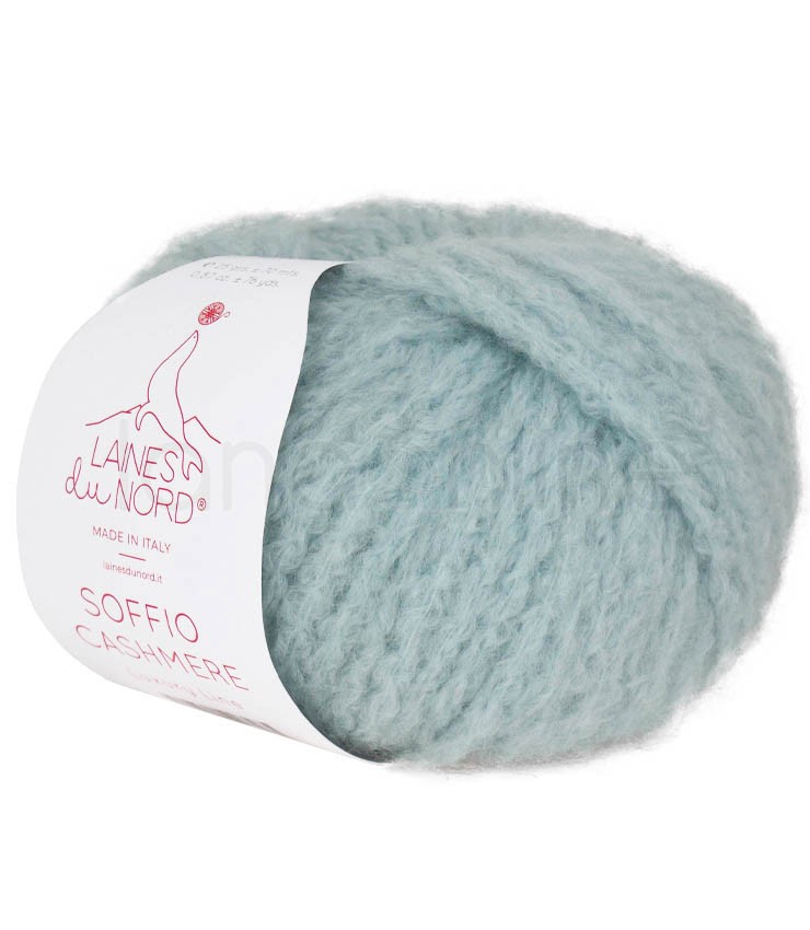 Il filato Soffio Cashmere della Laines du Nord, interamente Made in Italy è costituito da lana merino 16 microns certificata mulesing free, da cashmere e nylon.