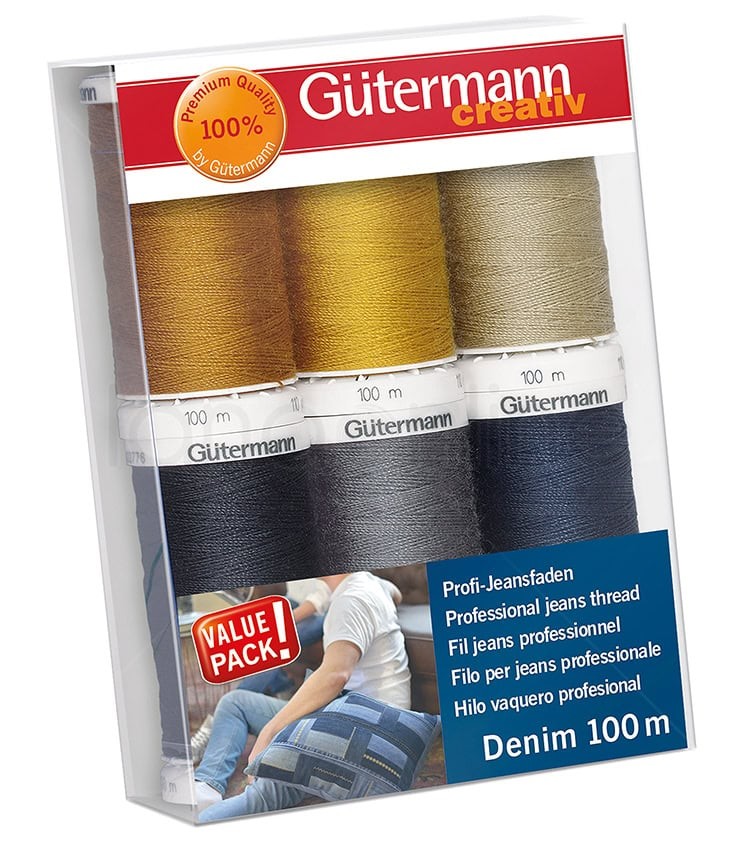 Set di fili della Gütermann per cuciture professionali su jeans. La confezione contiene 6 rocchetti da 100m in colori differenti pur rimanendo nelle tonalità classiche. Questo set è ottimo sia da tenere per le emergenze sia per la realizzazione di veri e propri progetti ma anche come idea regalo.